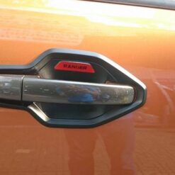 ✅ Kiểu dáng : Thiết kế zin theo xe, nằm ôm sát hõm cửa và viền phía trên tay nắm cửa, bề mặt in nổi tên xe nhằm tăng tính thẩm mỹ cho phụ kiện, đồng thời để phân biệt với các dòng xe khác.