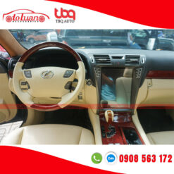 Khâu da vô lăng bọc da nắp kèn Lexus LS460 màu kem